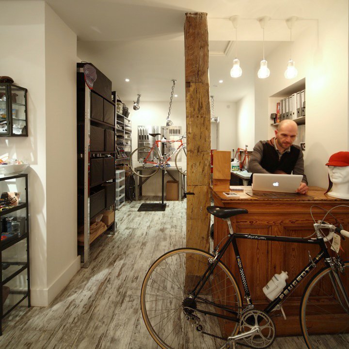 On admire sur le trottoir un étalage de "beaux vélos" qu'il se procure en chinant. Les peintures sont d'origne, ainsi que les chromes. Bruno Urvoy se contente de les nettoyer et de remplacer les pièces usées. Ses vélos semblent neufs mais affichent un style "vintage" qui fait craquer les nostalgiques de leur jeunesse ou de celle des parents.