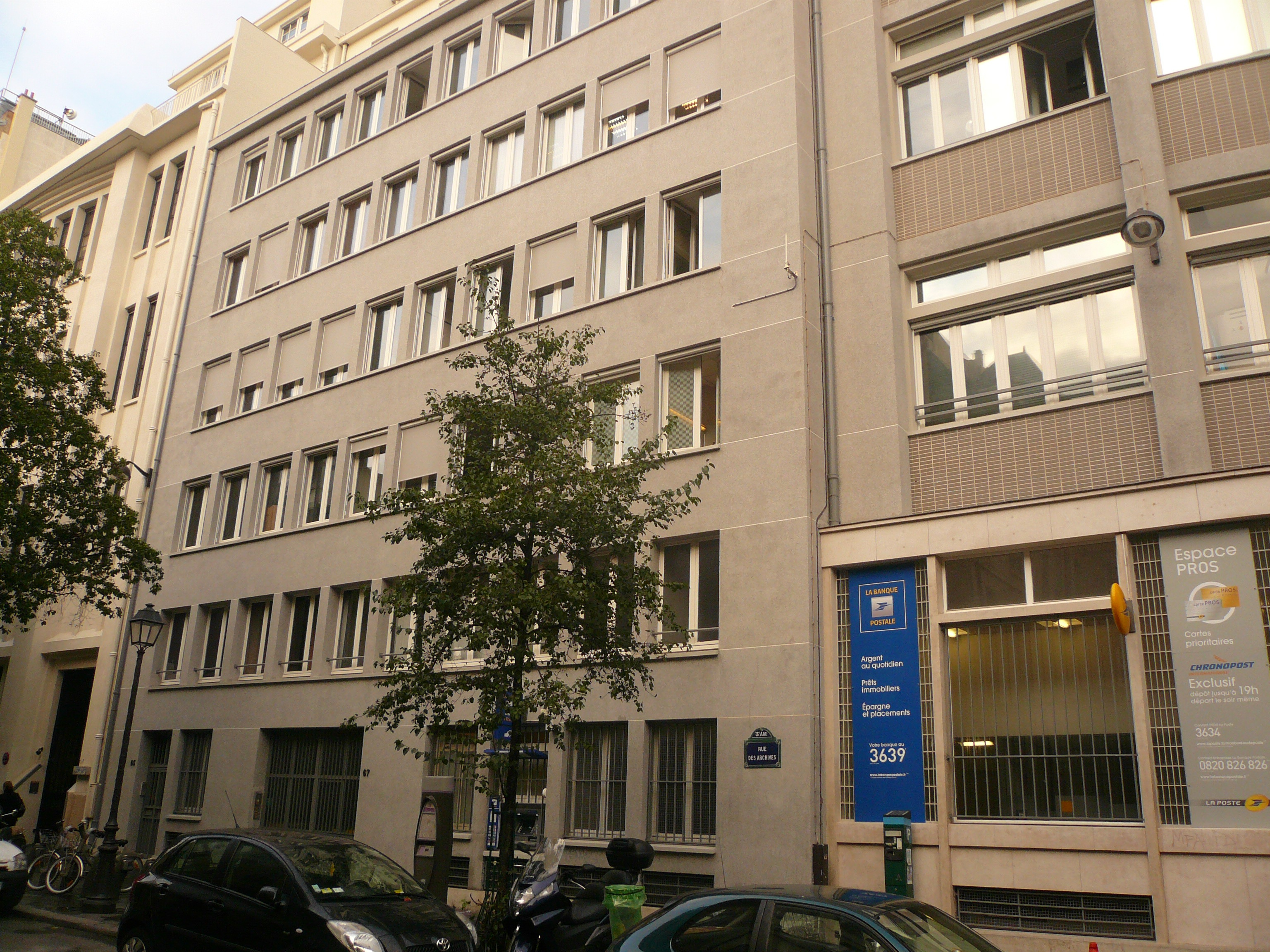 Immeubles des 63 et 65 rue des Archives. A droite le bureau de poste "Archives" (IIIe)