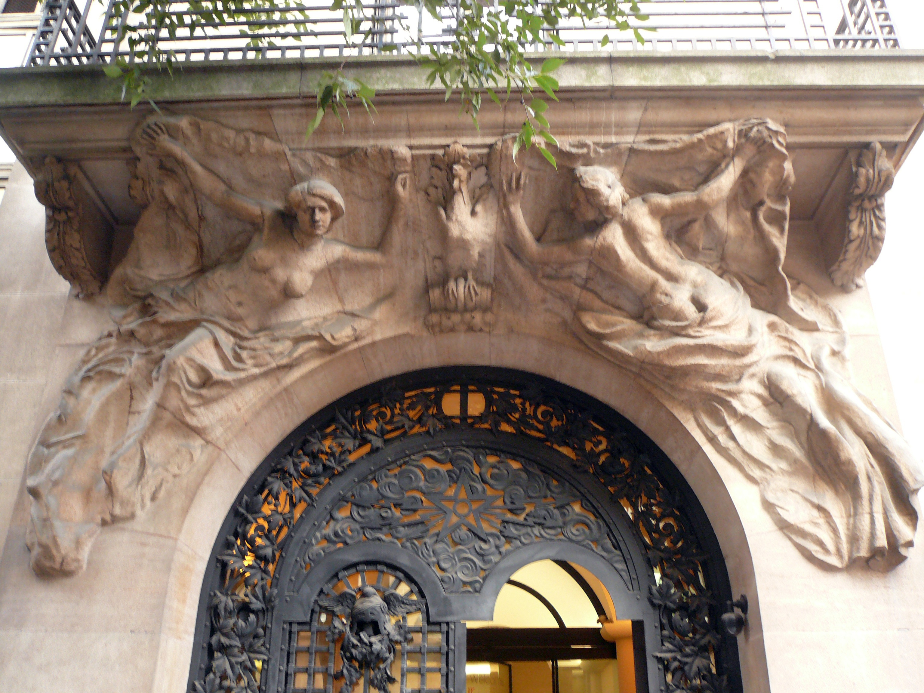 Porche de l'immeuble France Telecom, 61 rue des Archives (IIIe) avec sa caryatide et son atlante