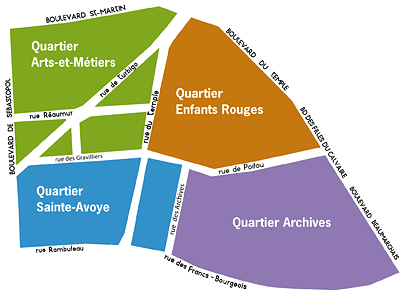 Voici le trajet (condensé) du train dans le Marais et sur les Îles : pont St Michel, parvis Notre-Dame, pont d'Arcole, place St Gervais, rues François Miron, de Fourcy, des Nonnains d'Hyères, Charlemagne, St Paul, St Antoine, de Sévigné, place du Marché Ste Catherine, rues du Parc Royal, Payenne, Pavée, des Rosiers, marché des Blancs-Manteaux, rues Vieille du Temple, des Blancs Manteaux, des Archives, Pastourelle, Charlot, du Perche, Vieille du Temple, des Francs-Bourgeois, place des Vosges, rue St Antoine, de Fourcy, pont Marie, quais d'Orléans et Bourbon, pont de la Tournelle.