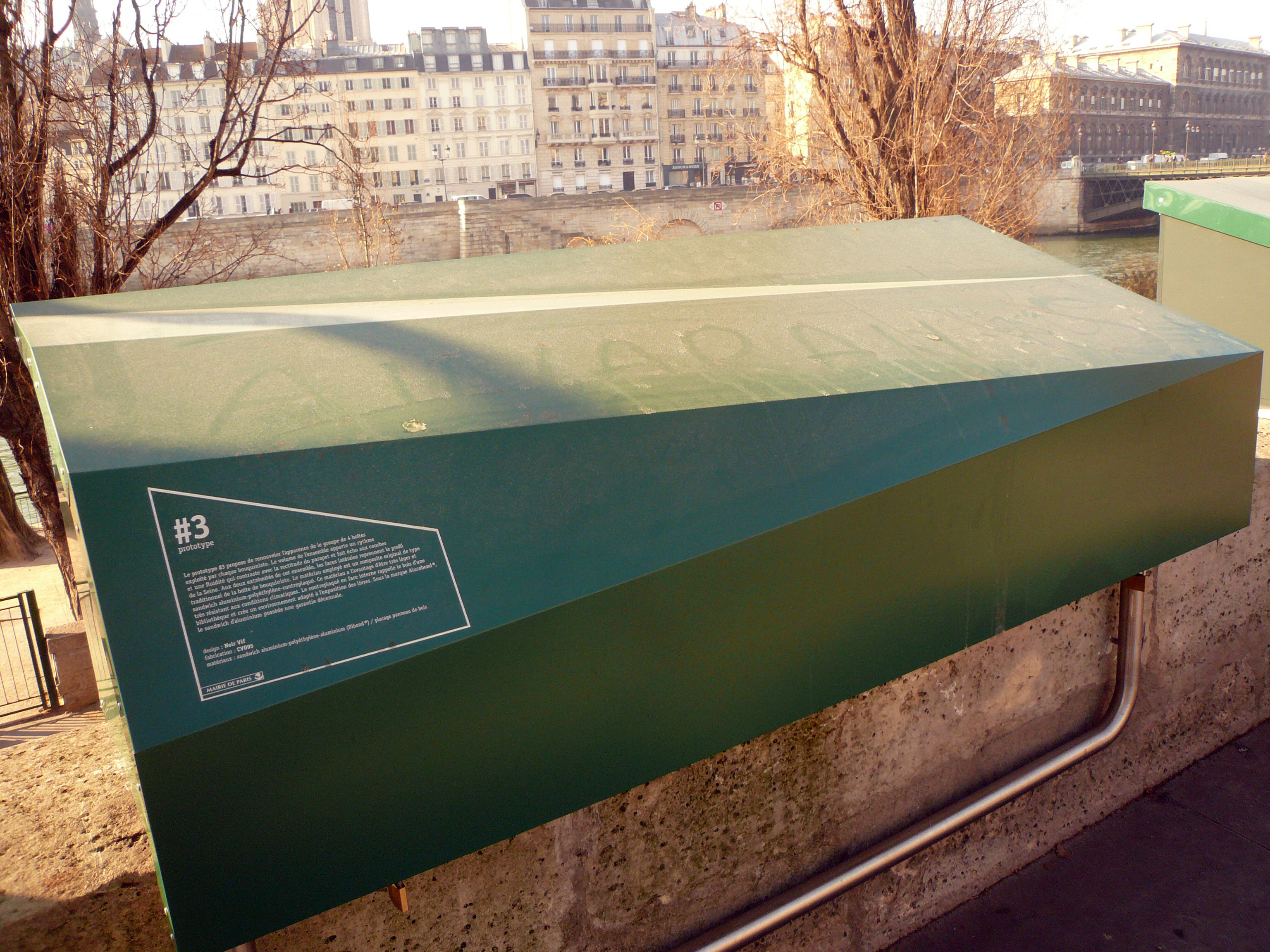 La Ville a donc engagé une réflexion avec les bouquinistes pour leur proposer de nouveaux modèles de coffres, plus pérennes et plus facile d’entretien. Avec le partenariat de designers, elle a présenté il y a un mois environ 4 prototypes qui sont effectivement testés in situ sur une margelle disponible des quais. A cette occasion les bouquinistes ont pu faire de nombreuses remarques sur l’étanchéité et la solidité de ces boîtes. Dans les mois qui viennent, les designers vont retravailler leurs prototypes pour faire des propositions plus abouties.