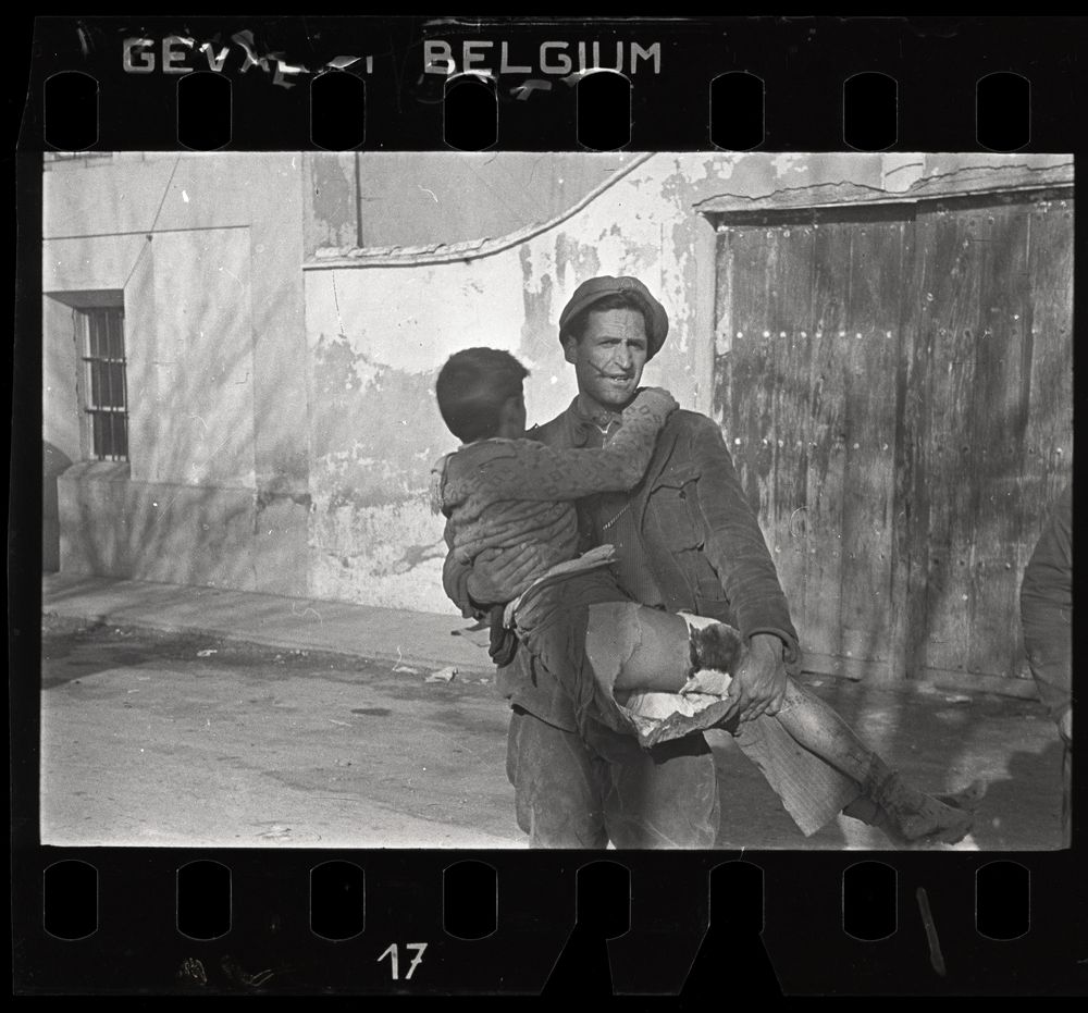 Un père tenant son enfant blessé © International Center of Photography / Magnum.