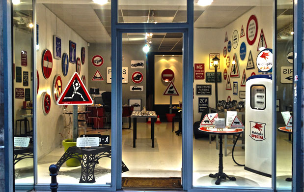 Au 68 rue du Temple, face au Musée de l' Histoire du Judaïsme est installé, depuis août dernier, un show room à la fois galerie et boutique à l'enseigne OPHITE. Bien que ce nom soit celui d' une roche magmatique de couleur verte proche du basalte, ce commerce propose des objets de décoration inattendus, des panneaux de signalisation. Ceux-là même que nous côtoyons habituellement lorsque nous marchons ou nous roulons mais qui ont la particularité d'être personnalisés à la demande ou réalisés par des « street-artists » connus. Ils peuvent aussi être d'ailleurs offerts en cadeau ainsi que le souligne la publicité.