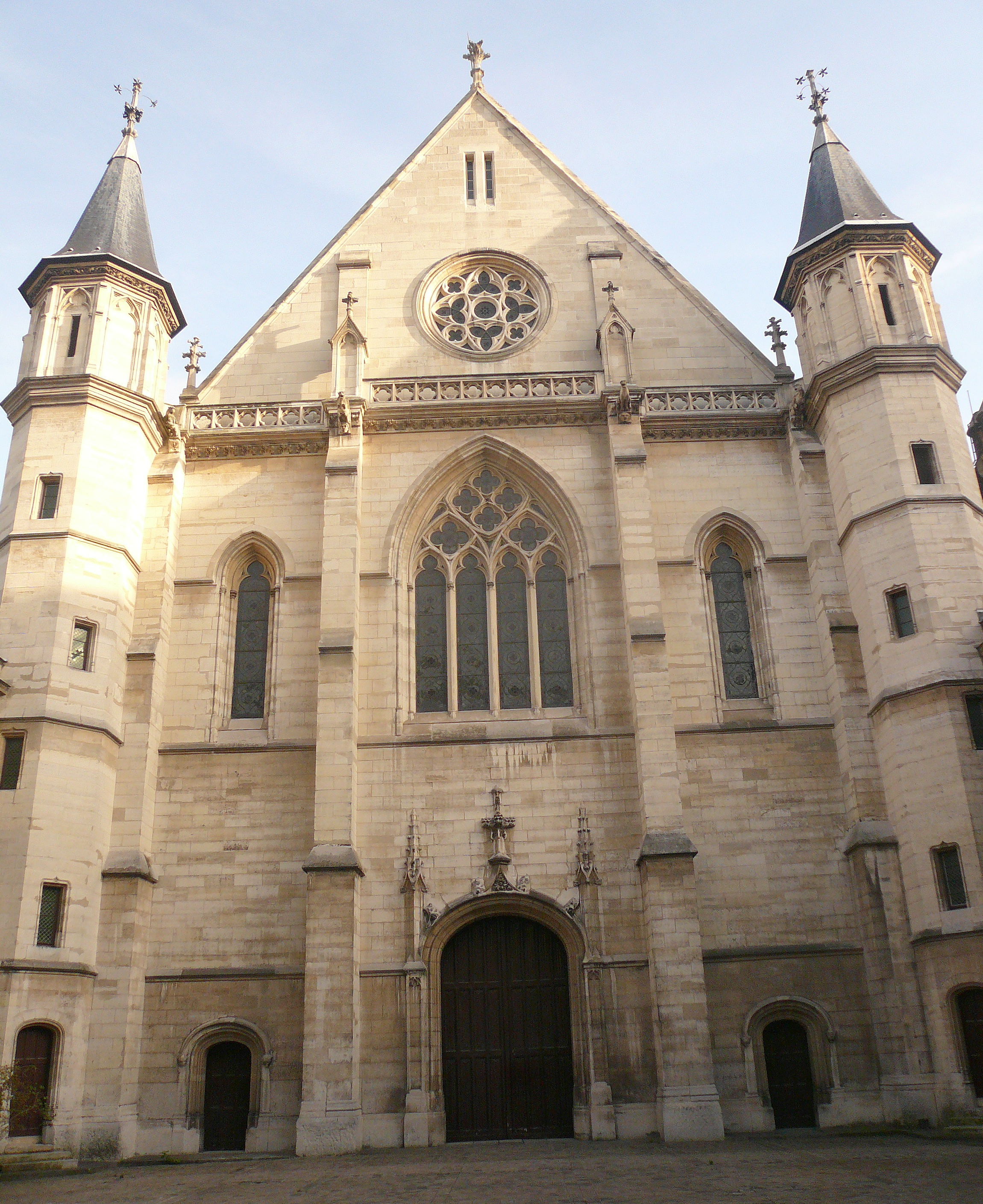 Façade gothique de l'église-chapelle de Saint-Martin-des-Champs, qui abrite désormais une salle du Musée des Arts & Métiers
