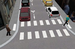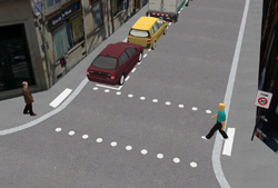 Des rectangles mais plus petits que ceux des passages piétons habituels pour les "zones 30" et très petits pour les "zones de rencontre".
