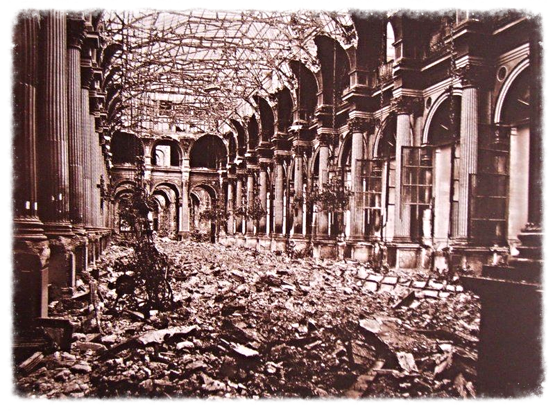 Tout près de là, voilà un peu plus de 142 ans, au lendemain du 24 mai 1871, l’Hôtel de Ville n’est plus qu’une ruine fumante ayant entraîné la mort de 600 personnes incapables d’échapper au brasier. L’armistice avec la Prusse, signé 4 mois plus tôt, n’avait pas été accepté par les parisiens qui s’étaient battus pour que l’ennemi ne puisse pas atteindre la capitale. Ces derniers établirent alors leur propre gouvernement obligeant les dirigeants en place à s’établir à Versailles. Le gouvernement en place n’a pas accepté cette situation et lança des troupes contre les « insurgés ». Furieux et se sentant perdus, les communards se défendent bec et ongle et arrosent de pétrole le siège de la municipalité pour y mettre le feu, ainsi qu’aux Tuileries. Ces deux édifices sont devenus deux monuments « martyrs ».