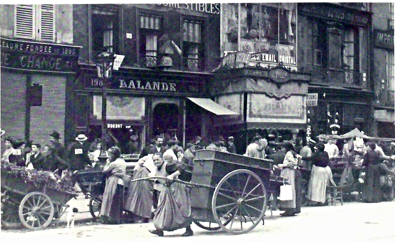 St antoine 001Rue St Antoine au niveau du n° 33. Marchandes des quatre-saisons (Photo "Mémoire des rues" – Parimagine)