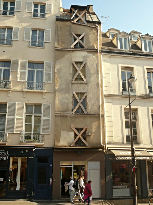 St antoine 40 immeuble étroit 05 04 14Maison XVIIème siècle, 40 rue St Antoine (IVe), momentanément condamnée (Photo VlM)