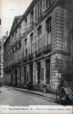 Hillairet indique que dès le règne de Charles IX, l’avocat Charles Galoppe est installé à cet endroit, y réside ensuite une famille de magistrats, les Aubery, dont l'un fut marié à la fille du duc de La Trémoille. L'architecte Claude Monnard construit l'Hôtel en 1624 pour Jean Aubery. C'est à ce dernier que l'on doit la façade de l'église Saint-Gervais-Saint-Protais. L'hôtel devint la propriété de Thierry le Rebours maître des requêtes, Président au Grand Conseil en 1672. C'est ce dernier qui fit remanier le bâtiment, en y faisant construire en 1695 son superbe escalier et son très beau vestibule.