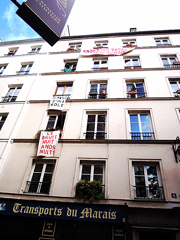 Constatant la carence de l'Etat, six riverains décident en janvier 2013 de former un recours en légalité devant le Tribunal Administratif de Paris, contre l'Etat représenté par la Préfecture de Police de Paris et la Mairie de Paris, qui se partagent les responsabilités en matière de respect de l'ordre public. Trois associations dont "Vivre le Marais !" s'y associent