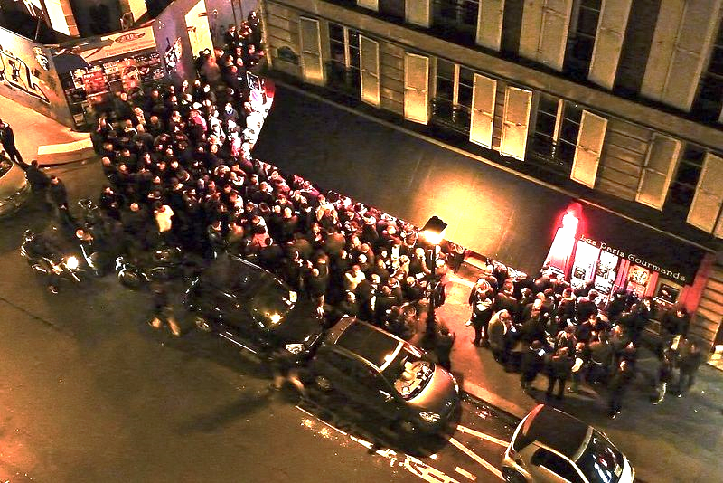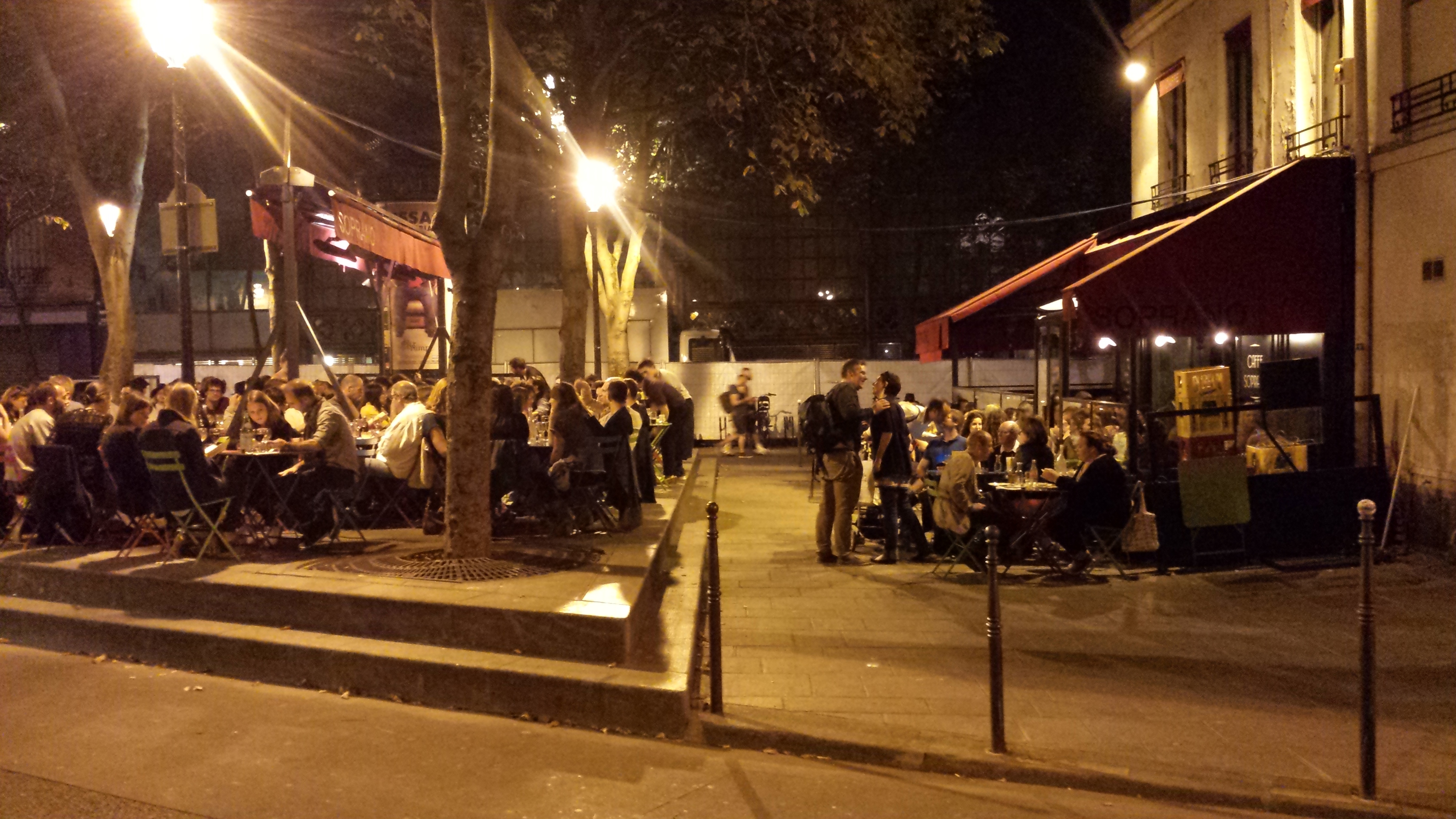 De son côté, le COX-BAR s'installe dans sa nouvelle situation en supprimant le cordon qui délimitait sur le trottoir rue des Archives un mince corridor humanitaire pour le passage des piétons, il baisse son store, éclaire et chauffe l'espace pour le confort de ses consommateurs. Bien malin celui qui pourrait deviner que sa terrasse est fictive….