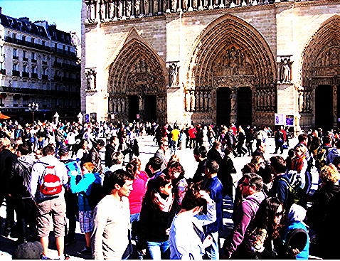 La foule de touristes devant Notre Dame