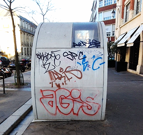 Aussi nos guérites n'échappent-elles pas à cette triste évolution. S'agissant de celle la rue de la Perle, elle est toute taguée et bien sale à l'intérieur, mais le plus criant est qu'elle se trouve au pied de l’immeuble qui abrite la direction et les services administratifs du Musée Picasso… Un joli spectacle pour les visiteurs souvent étrangers qui y sont reçus. Il en est de même pour les nombreux touristes qui passent à cet endroit pour visiter le Marais et le Musée tout proche. Quant aux riverains, ils sont écœurés par de tels agissements et l'insuffisante réactivité qui est engagée pour éliminer cette saleté et décourager ceux qui maltraitent ces installations.