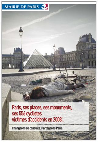 Affiche de la campagne de sensibilisation sur la sécurité routière menée par la Ville de Paris en 2008