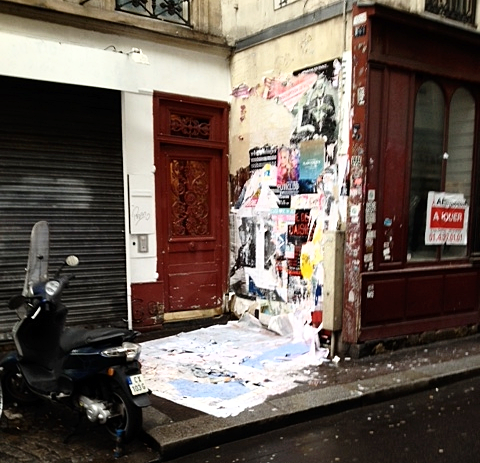 État des affiches sauvages gorgées d'eau par la pluie, 11 rue Michel le Comte (IIIe) (Photo VlM)