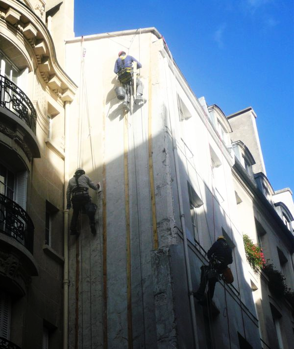 Courage, intrépidité pour ces hommes-araignées qui entretiennent l'immeuble du 23 de la rue.