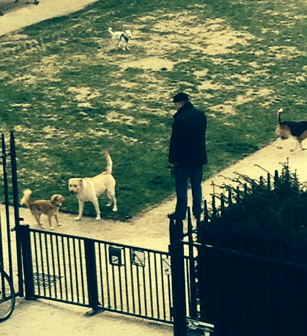 Chiens ayant pris possession du Square Leonor Fini, rue Vieille du Temple (IIIe) (Photo JFLB)