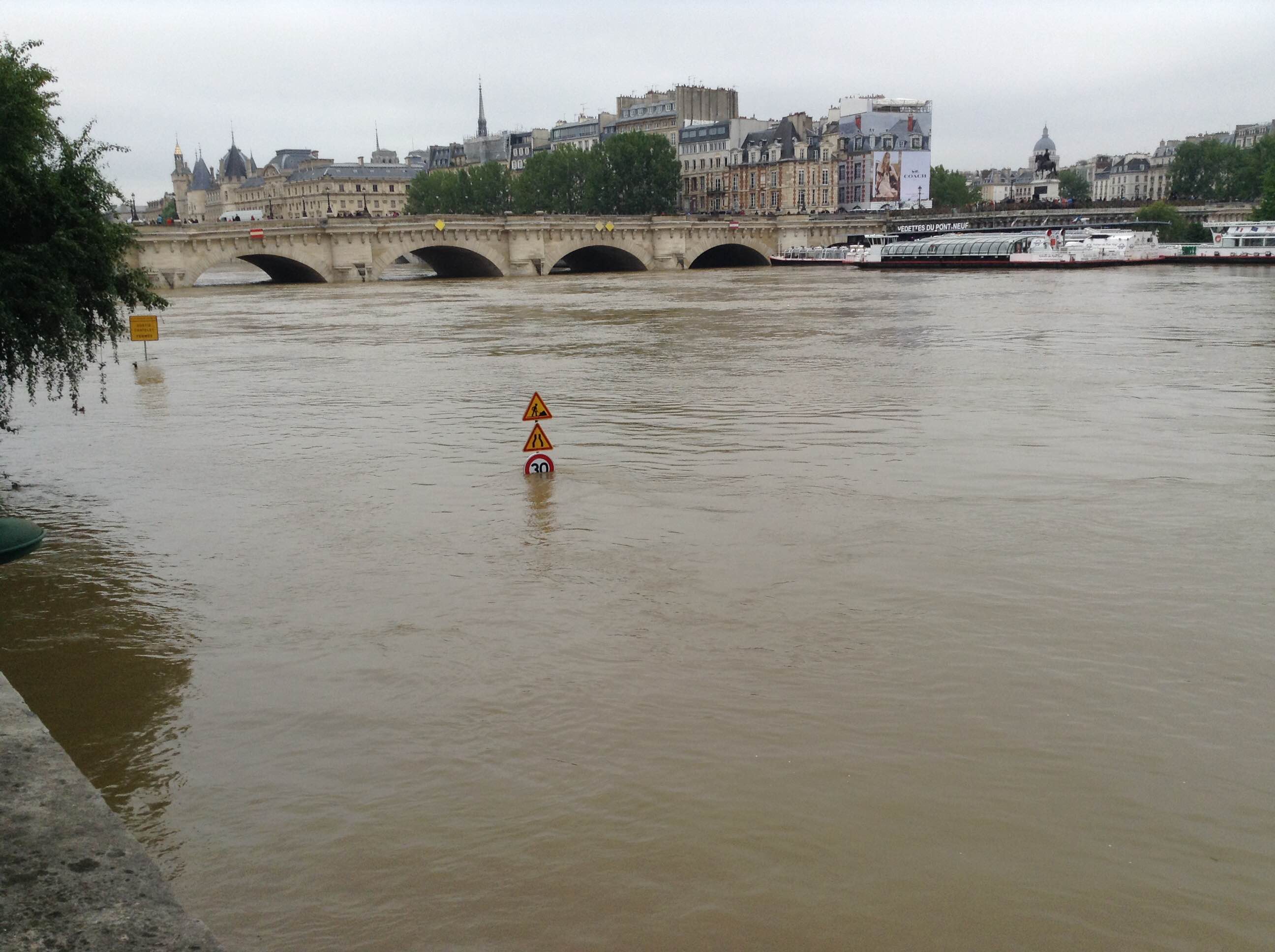 Ce 3 juin 2016, la Seine a atteint une hauteur de 6,10 mètres. Les berges sont envahies, les voies sur berges fermées ainsi que le RER C, les musées d'Orsay et du Louvre ont déménagé leurs sous-sols pour préserver les œuvres qu'ils contiennent, la bibliothèque François Mitterrand ne reçoit plus les chercheurs, et le zouave de l'Alma a de l'eau jusqu'à la poitrine.