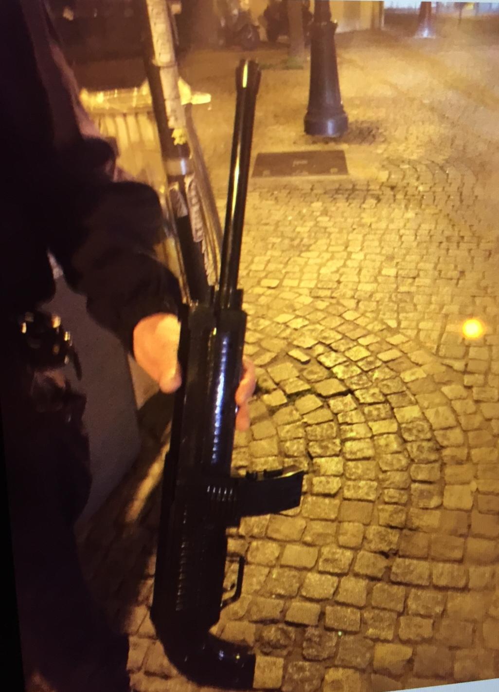 L'arme factice utilisée place de Thorigny IIIe (photo MT)