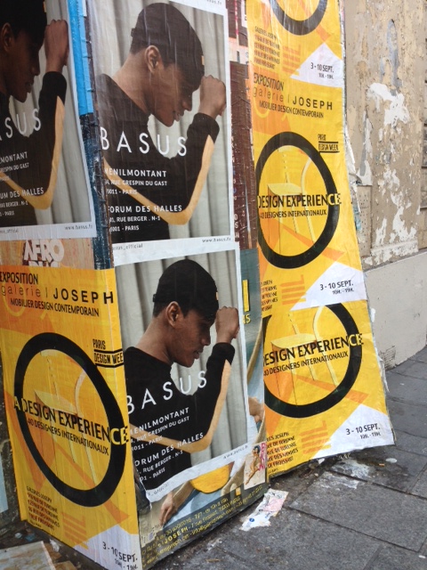 Vue du panneau recouvert d'affiches et devenu dangereux 51, rue de Turenne (IIIe) (photo ES)