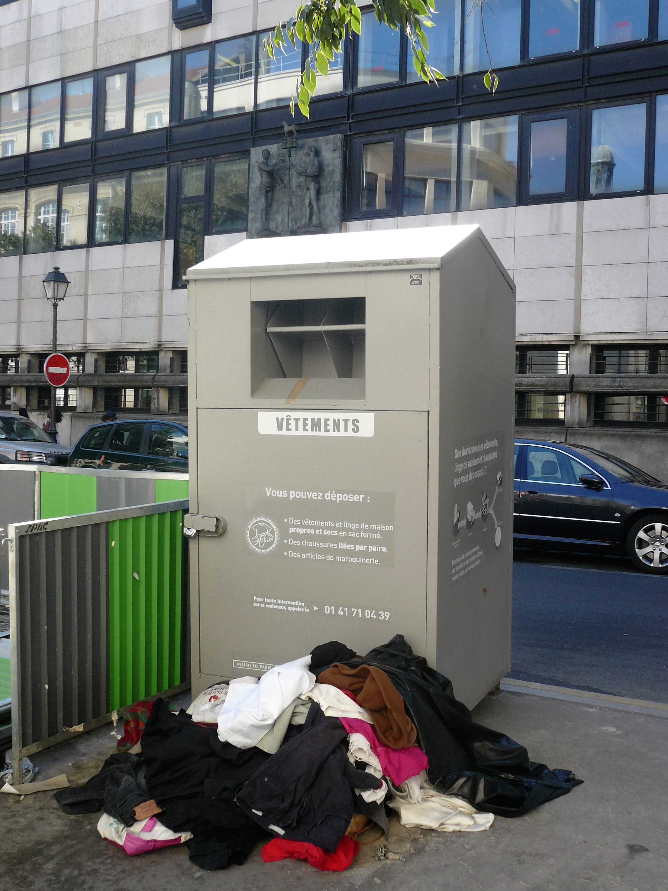 On se souvient qu'il y a deux ans un enfant est mort étouffé, abandonné par les auteurs de ce genre de razzia. Les organisateurs de la collecte, "Le Relais", filiale d'Emaüs, n'y sont pour rien mais ils doivent tirer les leçons des exactions qui sont signalées régulièrement depuis 2007 (cf. Le Parisien du 10/11/2014). Au lieu de conteneurs (il y en a plusieurs dans le Marais), peut-être serait-il préférable que les mairies d'arrondissements mettent un local à disposition des organisations humanitaires pour que les vêtements y soient déposés et gérés en toute sécurité.