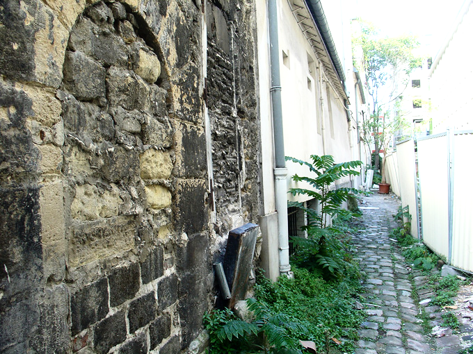 Accès à la ruelle Sourdis, côté rue Pastourelle : bornes, pavés, poternes et encorbellements (Photo VlM/PR)