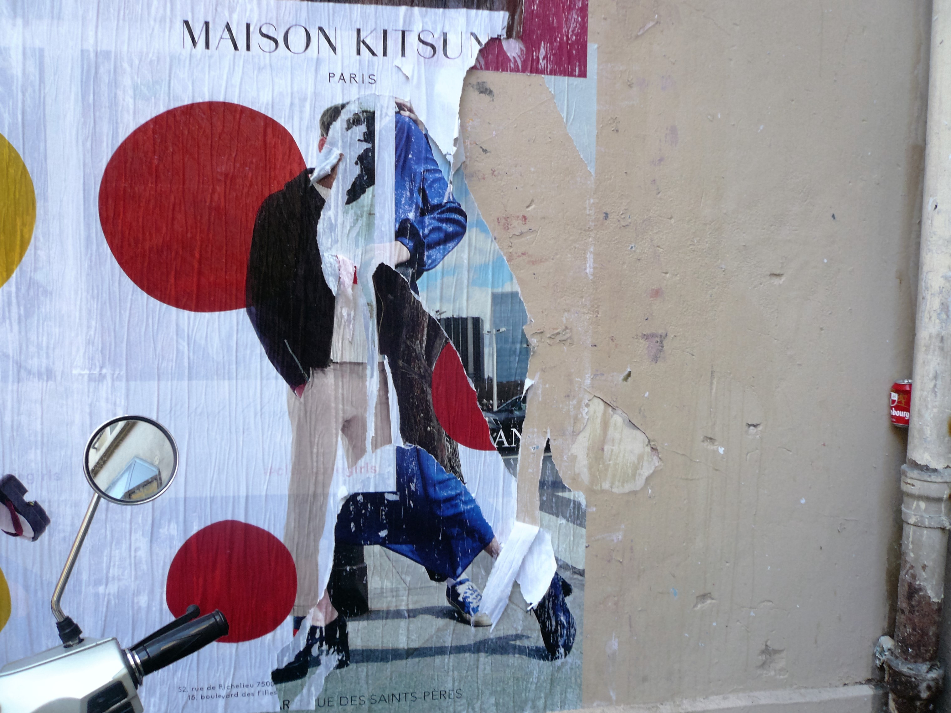 Affiches sauvages Camper et Maison Kitsuné "dans leur colle", sanctionnées par des riverains rue des Archives (IIIe) (Photos VlM/AL, cliquer gauche pour agrandir)