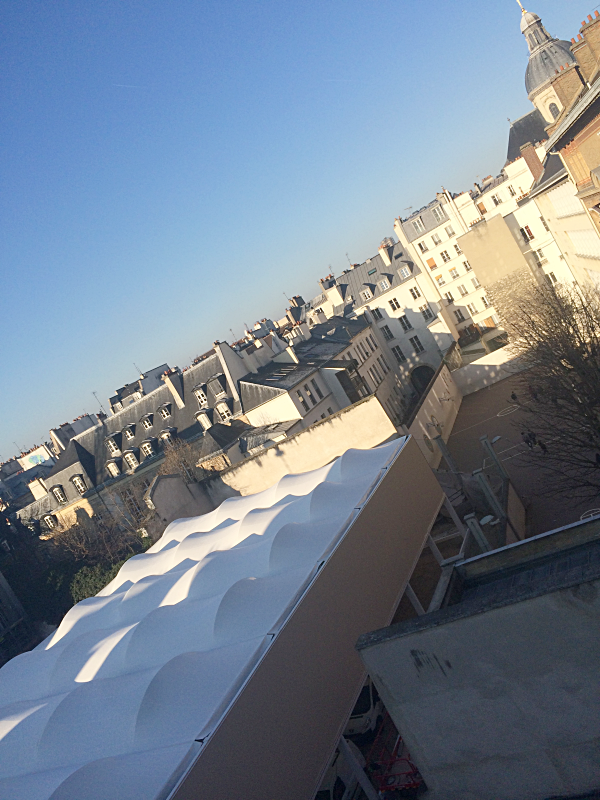 Vue du toit de la halle sportive derrière l'école de la rue Neuve Saint-Pierre (IVe)