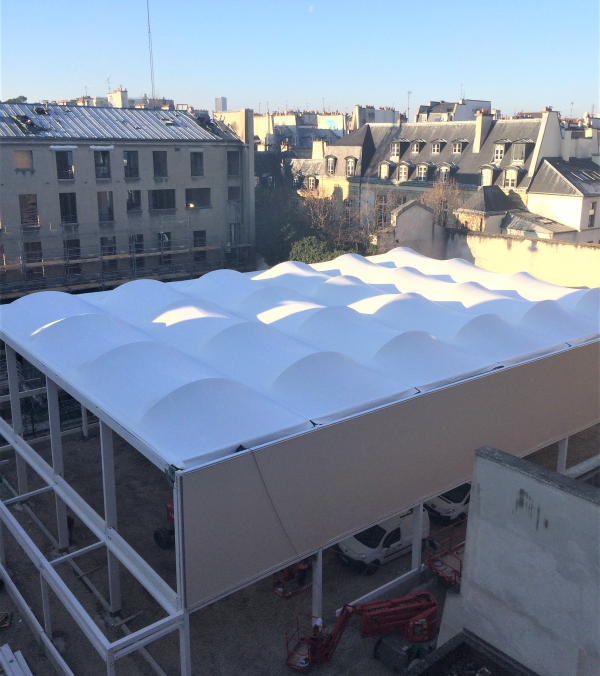 Une toile blanche plastifiée formant des vagues régulières qui s’insère mal dans son environnement immédiat, telle est la vue désormais pour les riverains qui habitent tout autour de la nouvelle halle sportive installée par la mairie du IVe. Nous pouvons comprendre désormais pourquoi le projet ait pu être décrié.