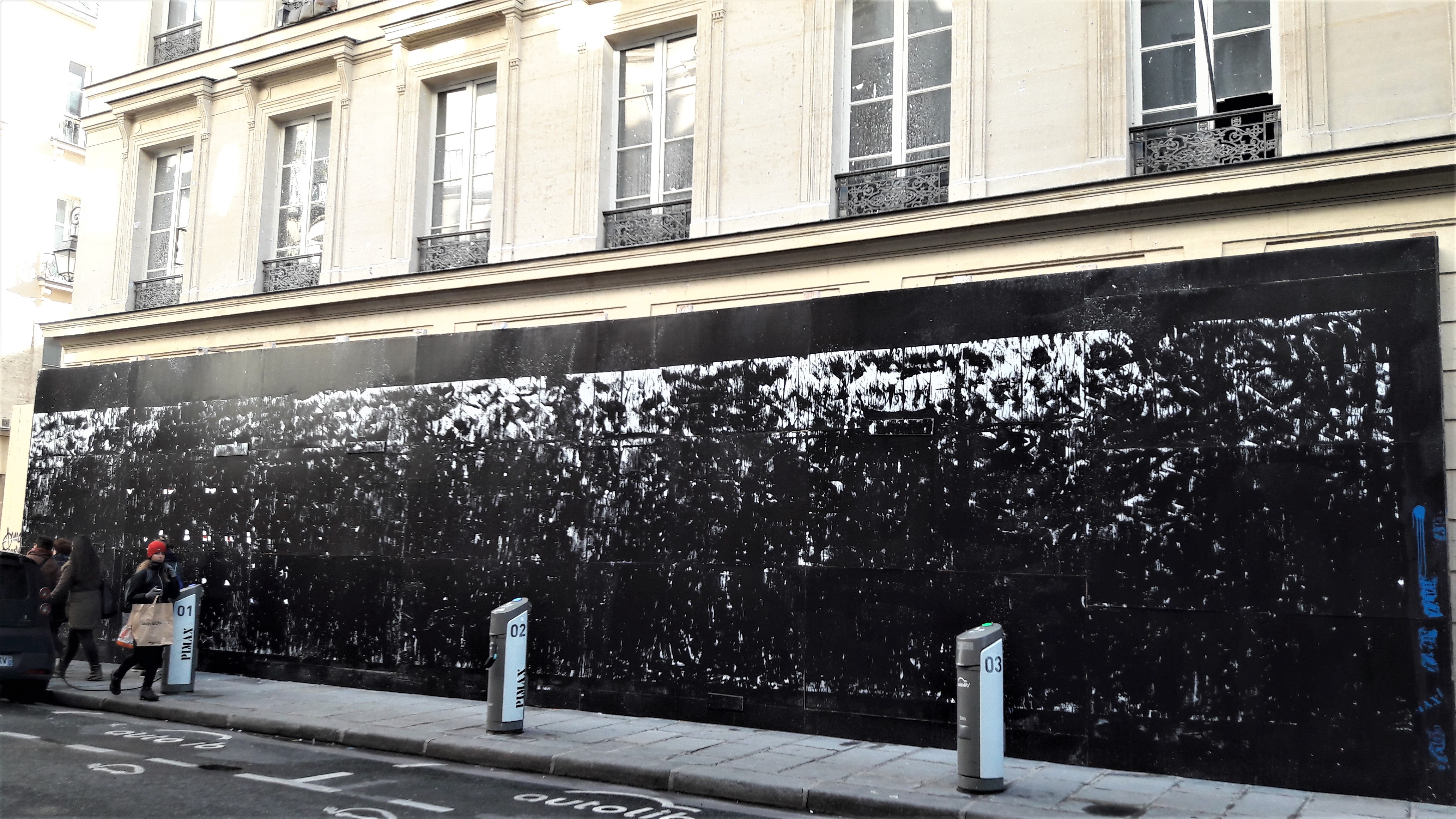 L'immense placard d'affiches sauvages du 37 rue Ste Croix (IVe) a disparu remplacé par une barricade qui se veut dissuasive