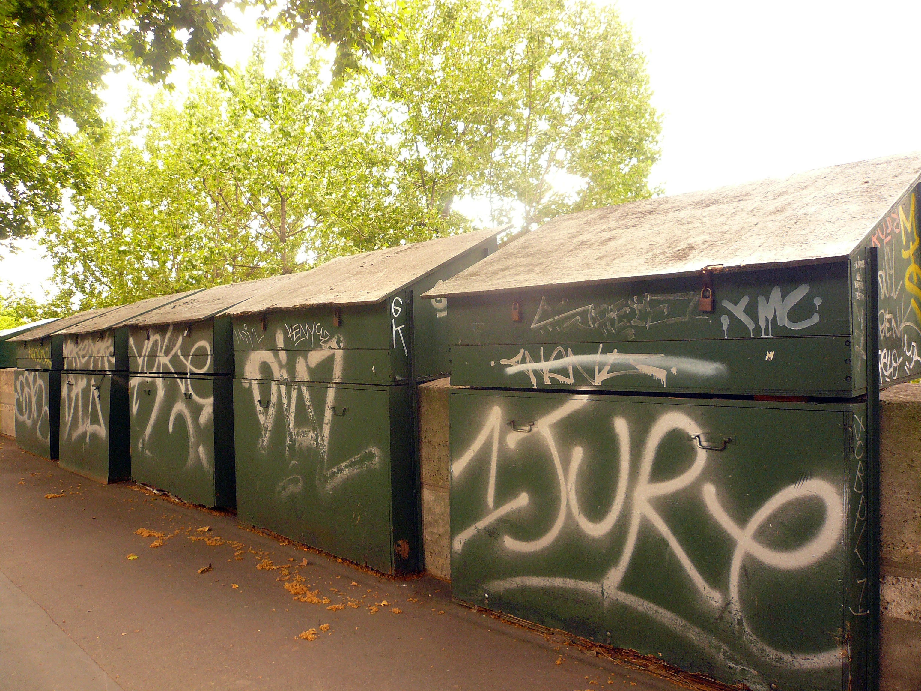 Bouquinistes tagués quai Hôtel de Ville juil 10Pour mémoire, photo VlM juillet 2010