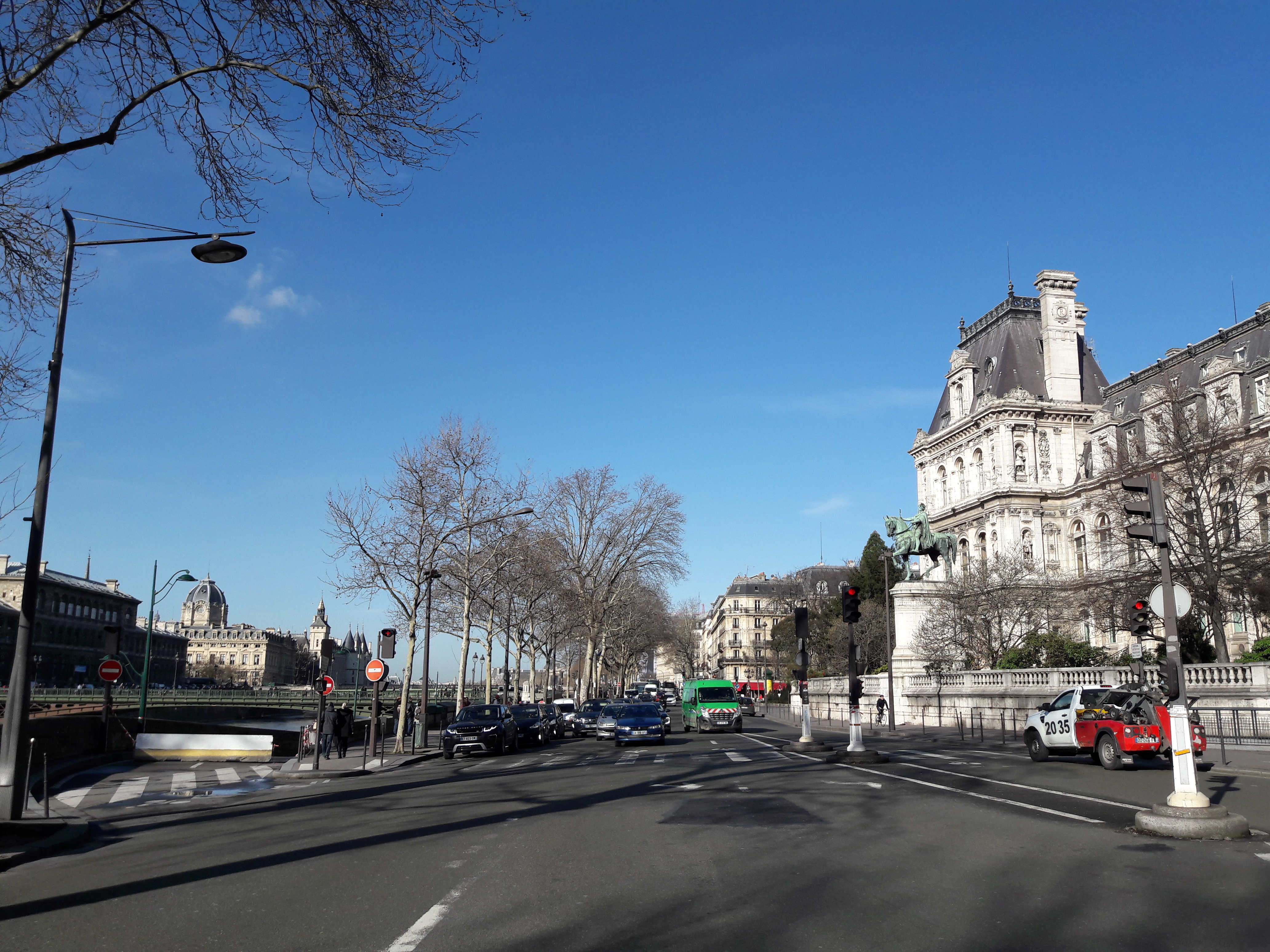 Sur les quais, on circule comme d’habitude, c'est-à-dire pas très bien, sans pourtant que la situation puisse être qualifiée de dramatique, comme montre cette photo prise à 12h00 quai de l'Hôtel de Ville.