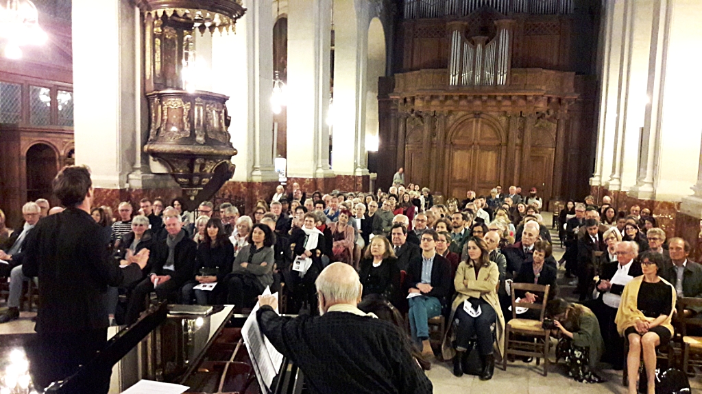 L'église des Blancs-Manteaux (IVe) s'est remplie hier pour accueillir nos artistes, la pianiste Magali Albertini, la soprano Pauline Feracci et le Baryton Thibault de Damas, ainsi que René Andréani qui a assuré la présentation des œuvres.