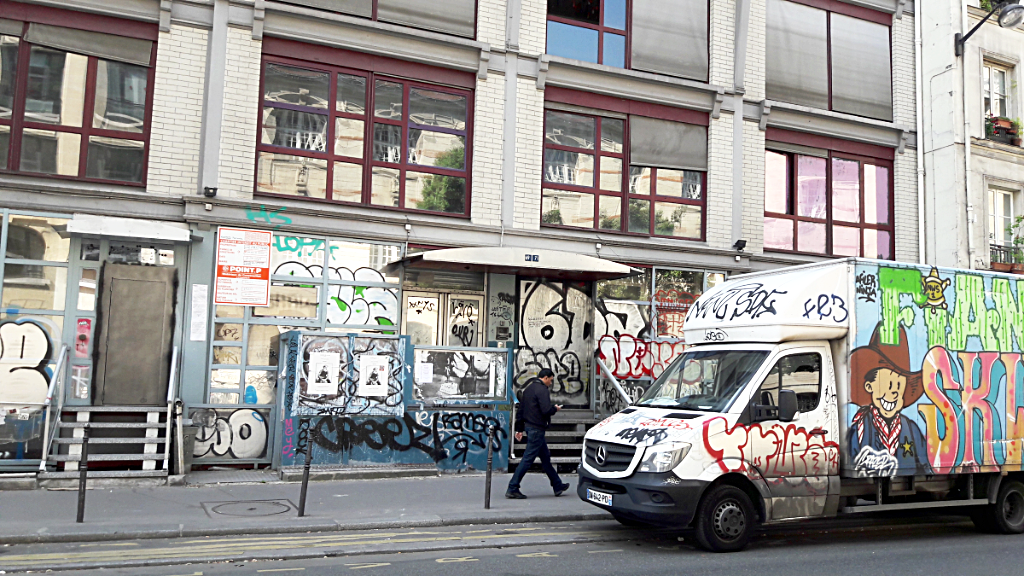 Comme si l'état lamentable de cet immeuble (dénoncé le 20 mars et le 8 août 2017 dans les deux articles de Dominique Feutry que nous lui avons consacré, complétés par des commentaires instructifs de Gauthier Caron-Thibault, Premier adjoint à la mairie du IIIe) ne suffisait pas, un camion de la même espèce est venu se garer devant lui. Il ajoute sa dose de laideur à un ensemble qui ne fait pas honneur au IIIe.