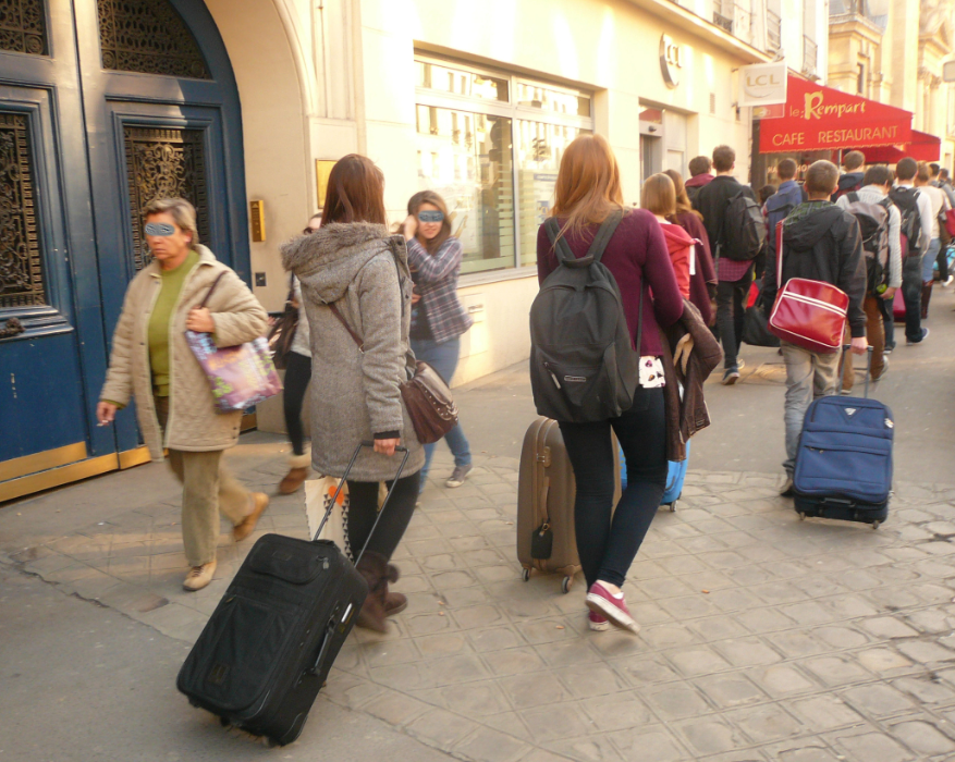 Locataires touristiques rue St Antoine (IVe) et leurs fameuses valises à roulettes…