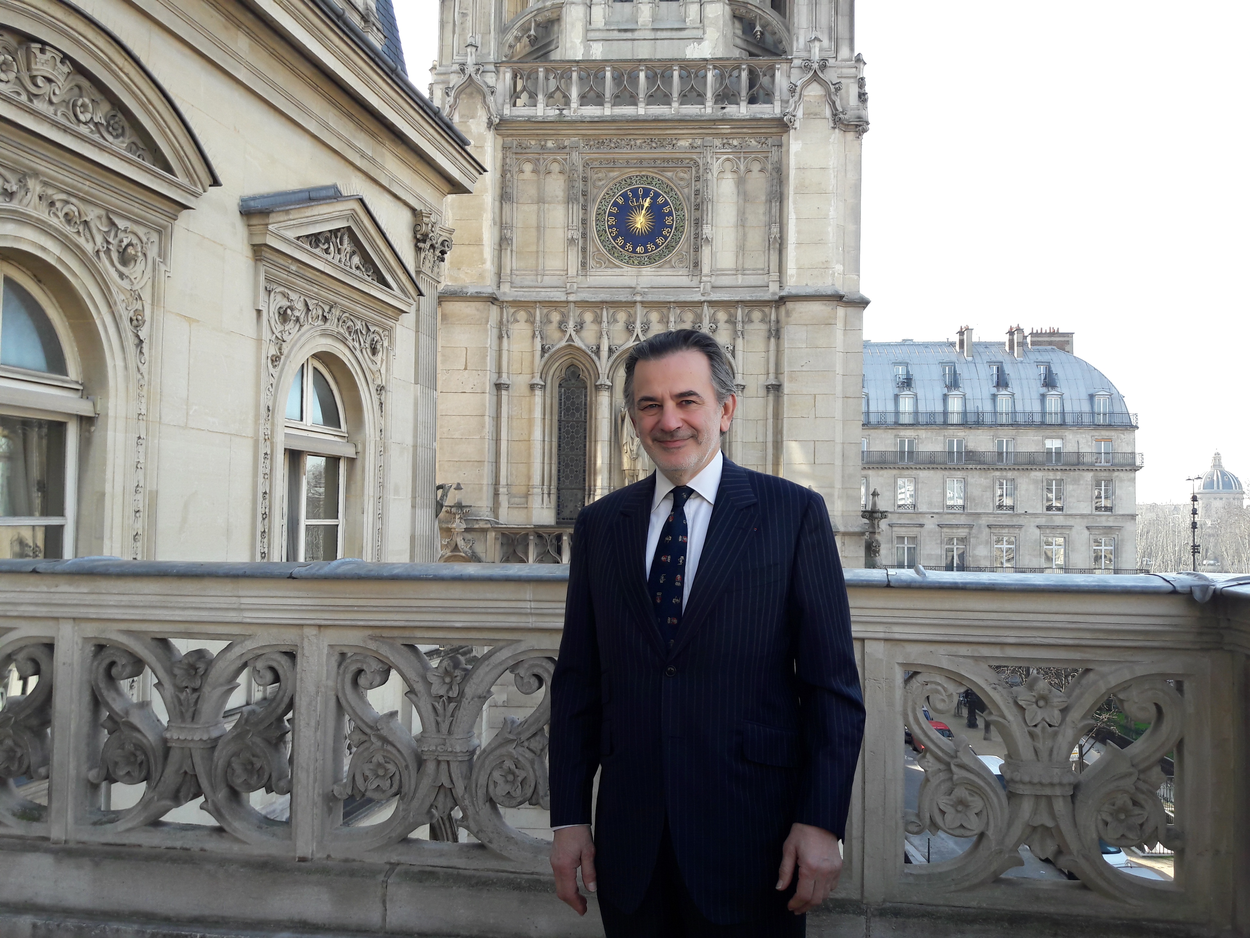 Jean-François Legaret, Maire du 1er arrt, sur la terrasse de la salle des mariages de la mairie, un monument conçu autour de 1860 par Jacques Hitthorff dans le style gothique flamboyant de l'église adjacente de Saint-Germain-l'Auxerrois