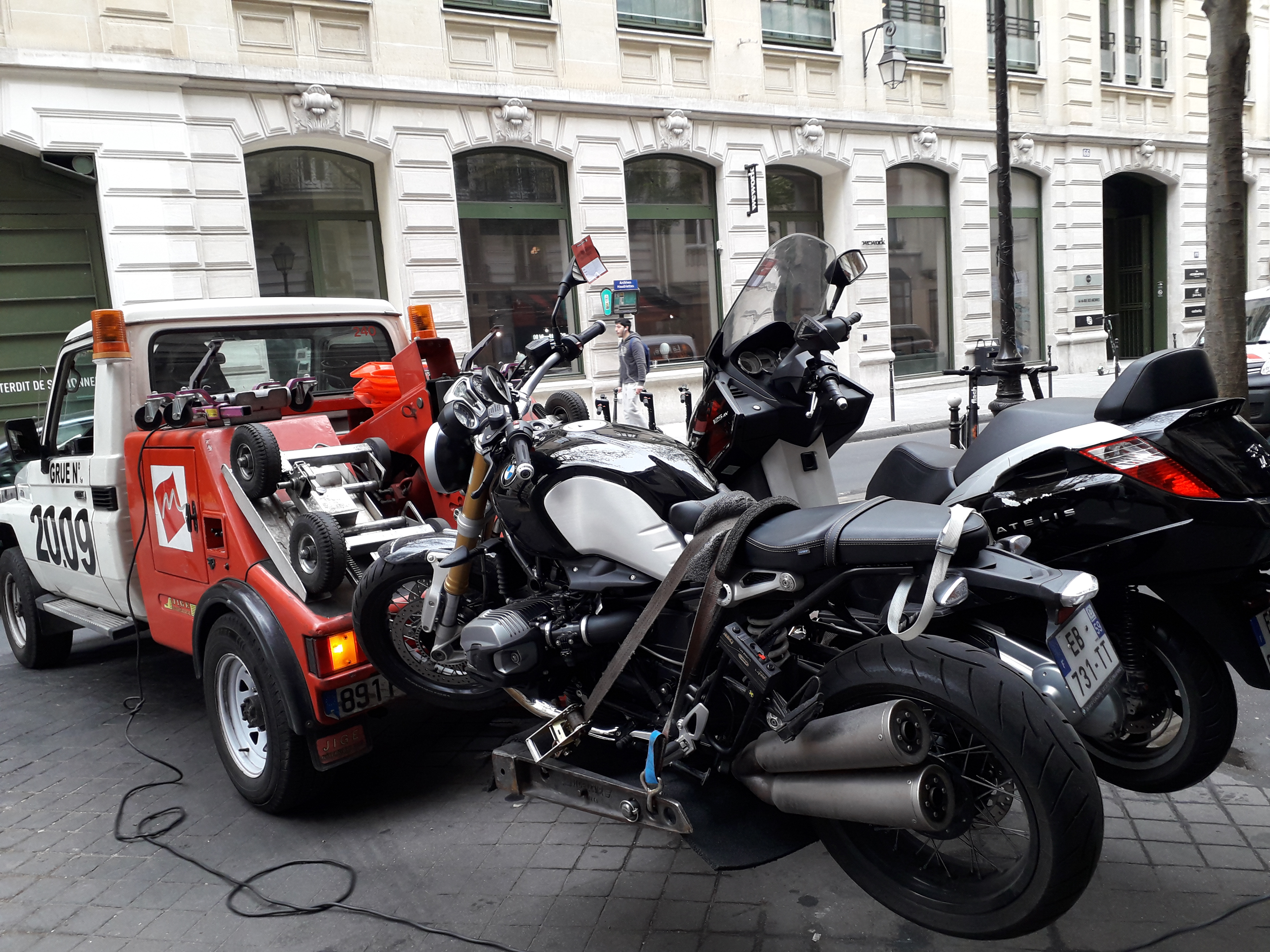 Direction la fourrière pour ces deux motos mal garées rue des Archives dans le IIIe….