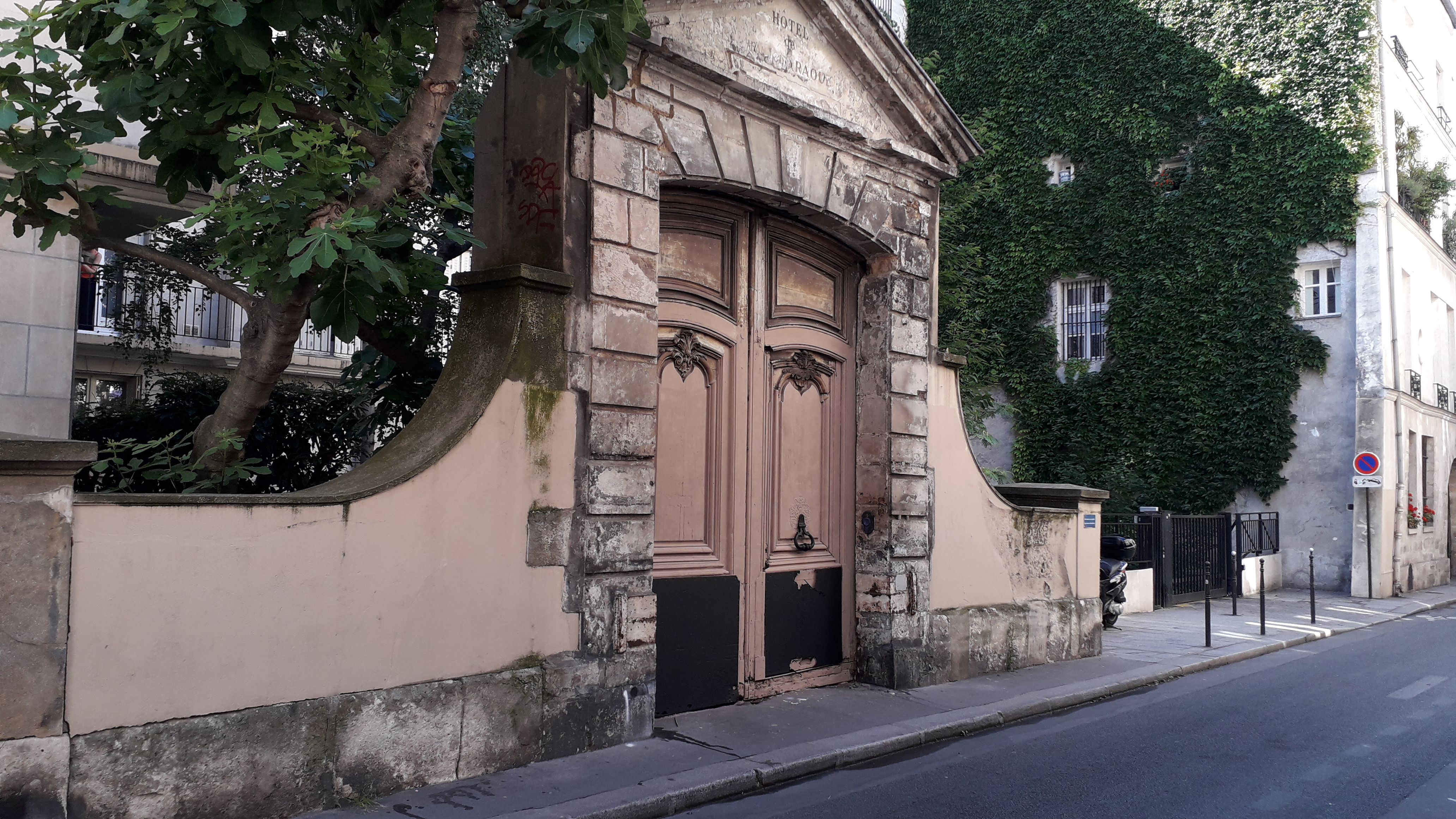 La diffusion de notre article du 6 mai 2019 "Saccage du portail de l'Hôtel Raoul : SOS à la Mairie de Paris" a été suivie d'une réaction qui a probablement bénéficié de l'intervention du Maire Ariel Weil que nous avons eu le plaisir de rencontrer à ce moment-là. Les graffitis abjects qui défiguraient les deux vantaux de la porte en bois ont été recouverts par les services de la Propreté de Paris d'un badigeon qui pare au plus pressé et joue les cache-misère. Le résultat n'est pas idéal mais il n'était pas possible de faire mieux à ce stade et nous en remercions les acteurs.
