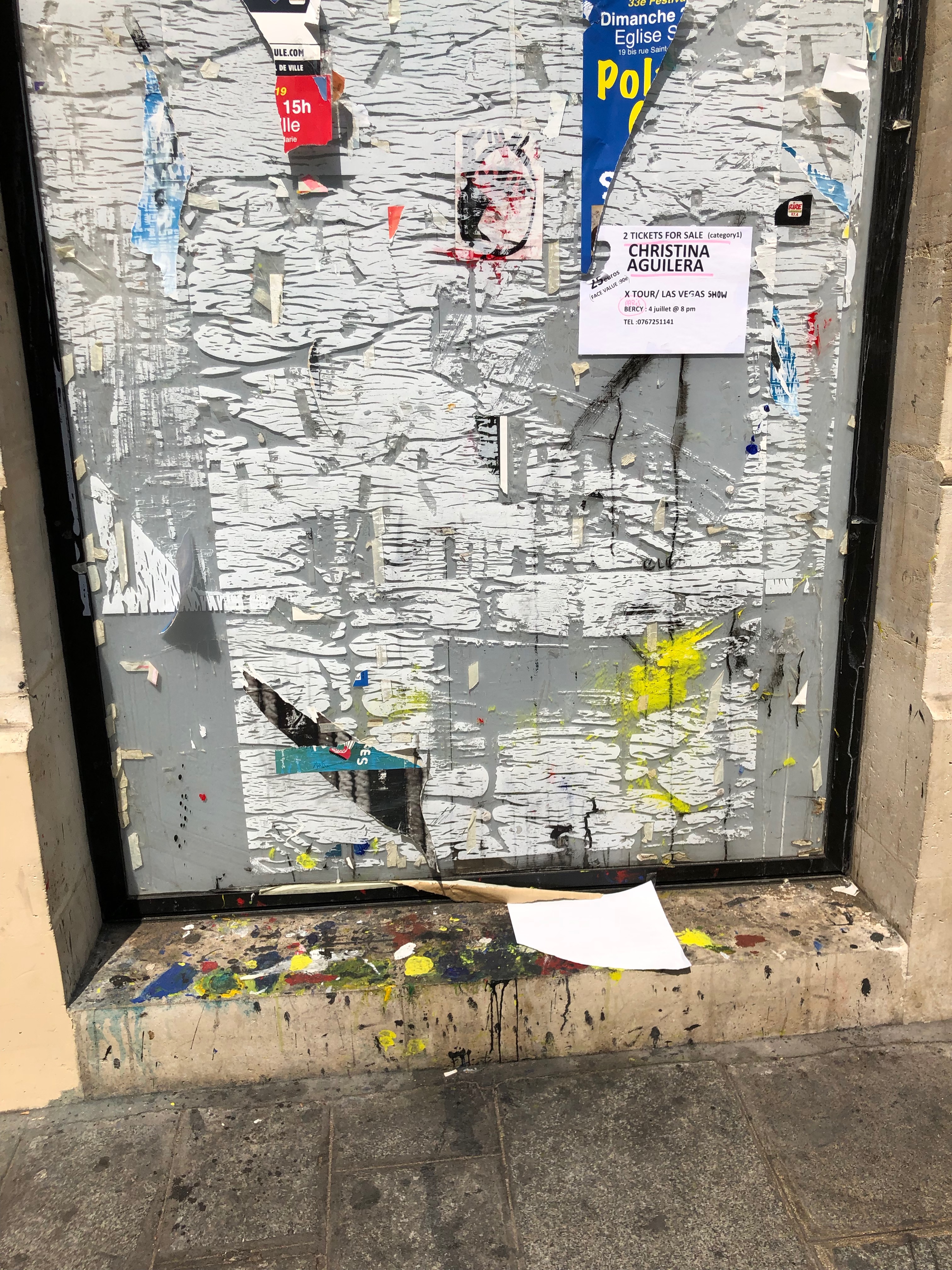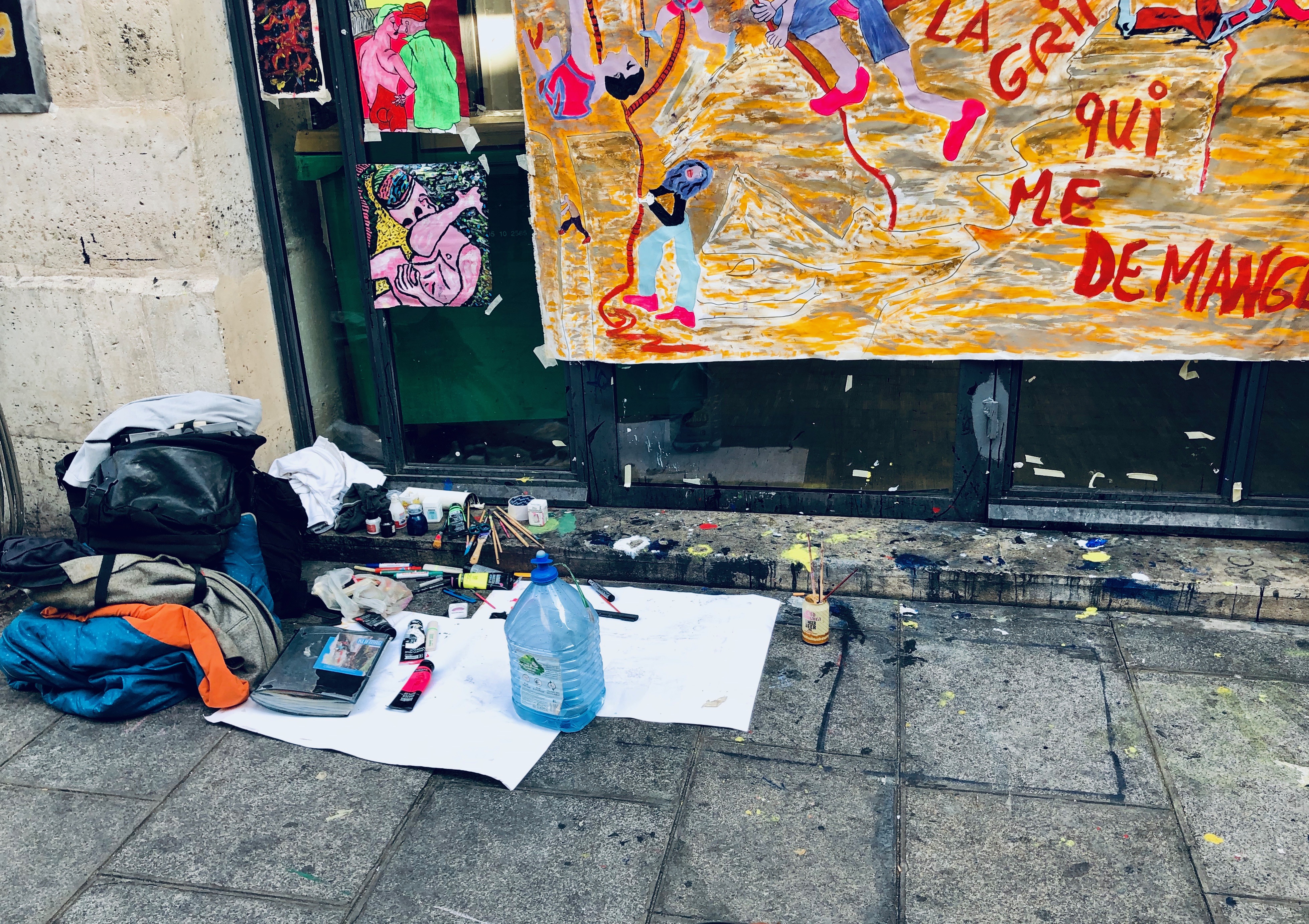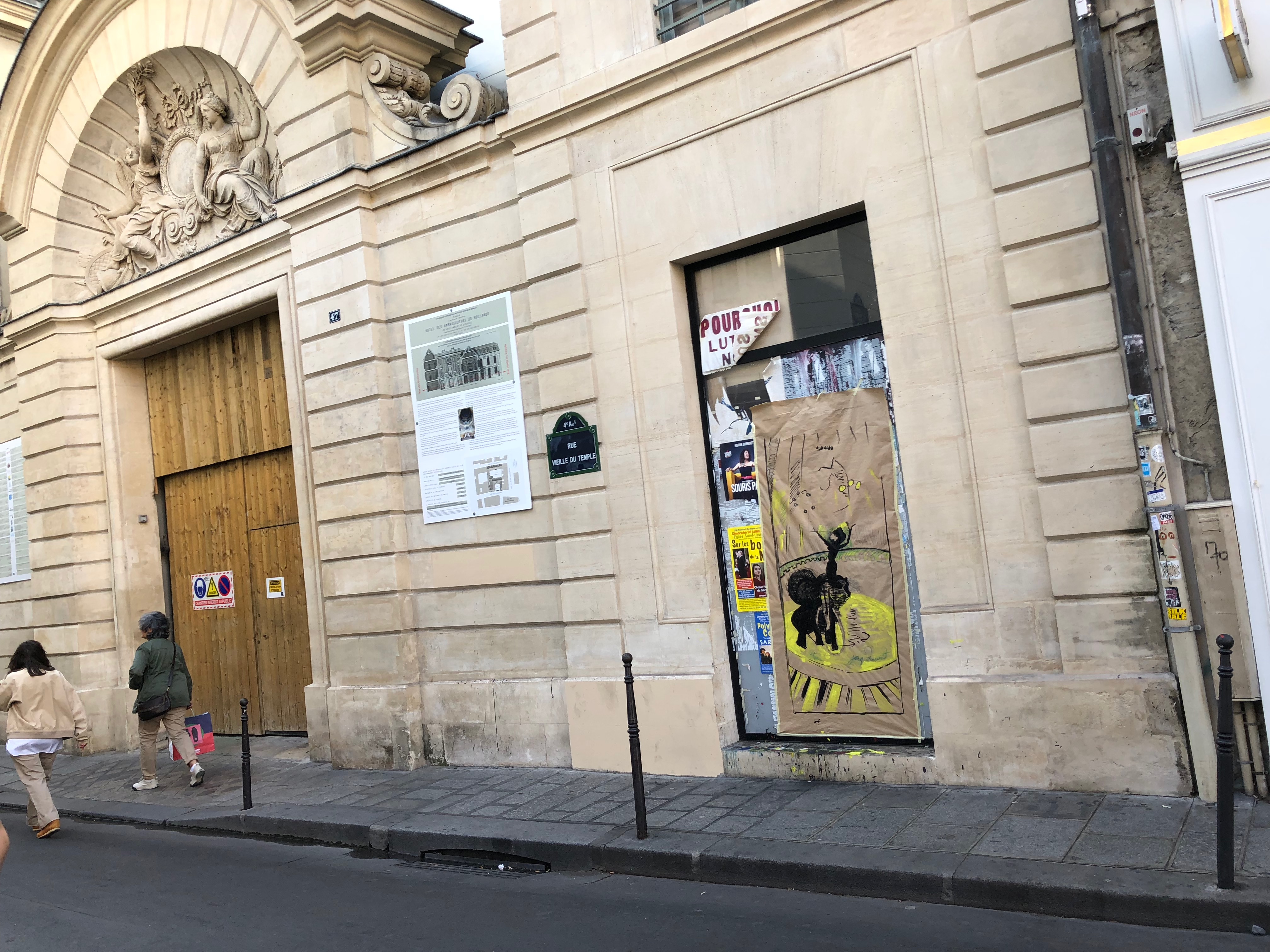 Sa façade en pierre, les vitres, et le trottoir de l'entrée principale sont souillés quotidiennement depuis trop longtemps. Abandonnée comme une vulgaire palissade de chantier, la façade de ce lieu historique est transformée en atelier sauvage, dans l'indifférence apparente de la mairie de Paris.