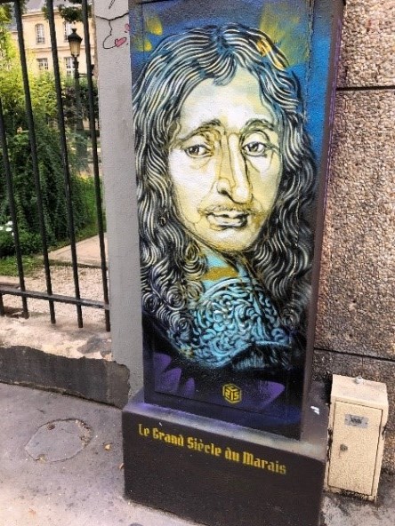 Sa rencontre avec l’artiste portraitiste de street art, Christian Guémy, connu dans le monde de l’Art sous le pseudonyme C215, a permis de faire éclore l’idée de cibler des personnalités marquantes du « Grand Siècle du Marais » qui ont vécu dans ce quartier.