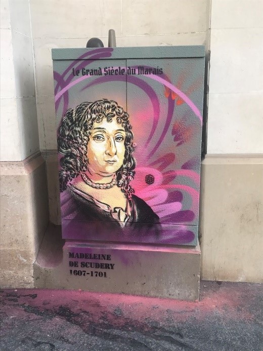 Les premiers salons littéraires furent créés dans le Marais IVe, Paul Scarron et son épouse, Françoise d’Aubigné, future Madame de Maintenon, reçoivent au 56 rue de Turenne. Beaucoup de femmes d’esprit tiennent salon dans la ruelle de leur chambre, Ninon de Lanclos, 36 rue des Tournelles, Madame de Sévigné au 23 de l’actuelle rue de Sévigné, et Madame de Scudéry, surnommée Sapho et Précieuse française, au 2 rue du Temple.