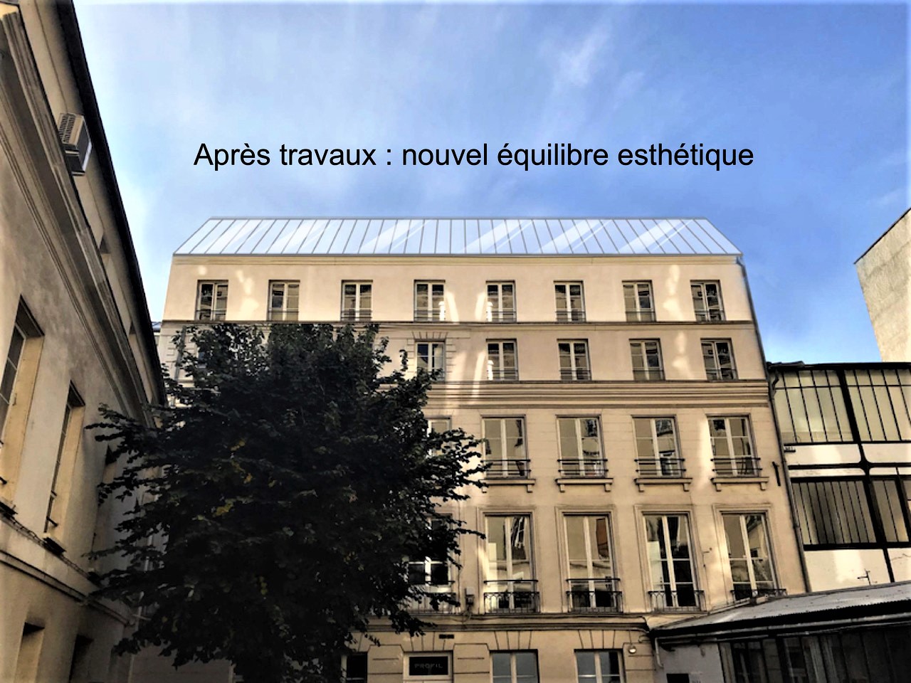 Etat actuel de l'immeuble, avec son 4ème étage réhaussé et tronqué