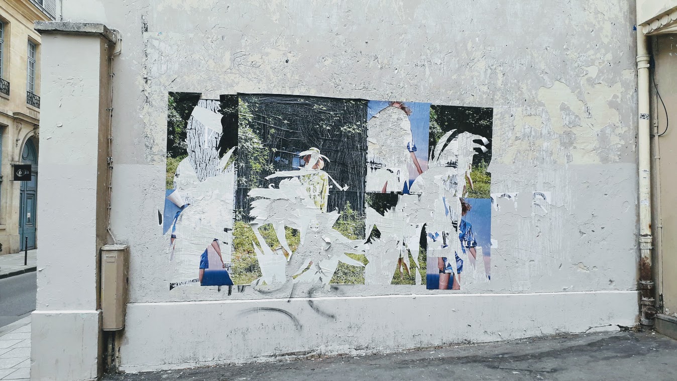 L’idéal serait que les lambeaux restent attachés et pendent, voire de décoller la totalité par le haut et laisser pendre une grande vague qui cacherait le bas, et écrire des messages sur ce dos mis à nu ; mais cela demande de la logistique : un escabeau et de l’eau pour ramollir l’étron. Si des personnes veulent faire équipe, qu’elles contactent l’association Vivre Le Marais qui leur transmettra, je l’espère, mon adresse courriel.