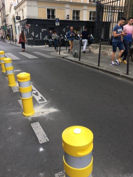 Les protestations pleuvent. On trouve ces plots jaunes rue Charlot, mais aussi rue Charles-François Dupuis et rue Vieille du Temple. Un autre dispositif est signalé rue de Saintonge….