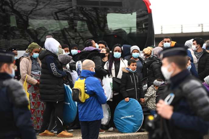 Migrants évacués des abords du stade de France à St Denis le 17 novembre 2020 (Photo AFP)