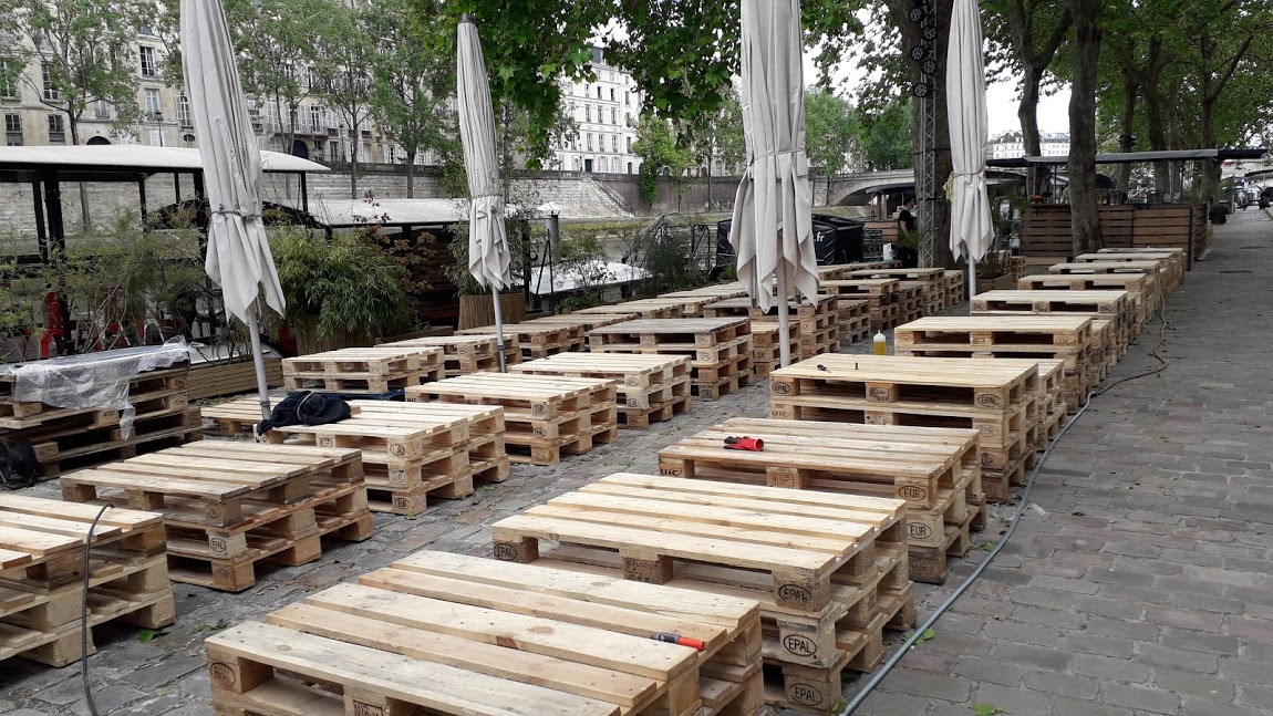 PalettesPalettes à usage de tables (?) alignées sur les berges de la Seine