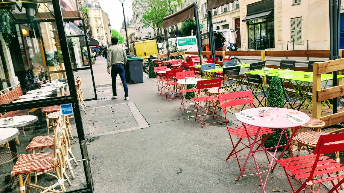 Il reste cette rangée de tables/chaises rouges ajoutée sur le trottoir. Elle est potentiellement génératrice de thromboses surtout quand les chaises sont occupées. Elle enfreint le règlement qui impose un passage garanti pour les piétons de 1,80 mètre. Il importe qu'elle soit retirée.