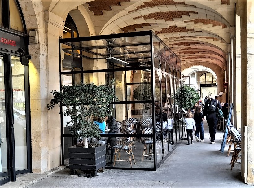 Café-restaurant "Ma Bourgogne", 19 place des Vosges (IVe) et son dispositif de chauffage de terrasse