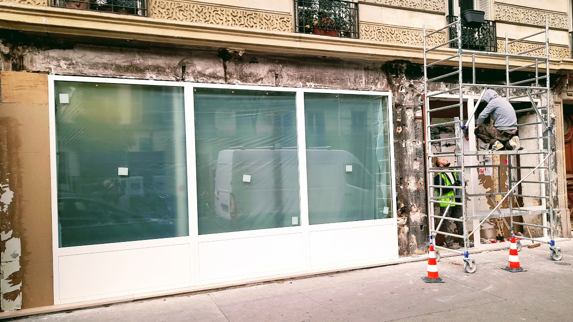 Tout près de là, au 37 rue des Archives, deux commerces côte à côte, les " Pralines Mazet " et la "boucherie des Archives", ont fermé pendant le COVID. Des travaux sont en cours pour rassembler les deux boutiques. On voit des ouvriers ici en train de poser les devantures, qui paraissent sobres. Difficile de savoir ce qui se prépare. Les gens qui s'affairent sont muets comme des carpes ou ne savent pas. C'est la porte ouverte à toutes les conjectures. Parmi elle : attention, c'est une boite de nuit qui se prépare !