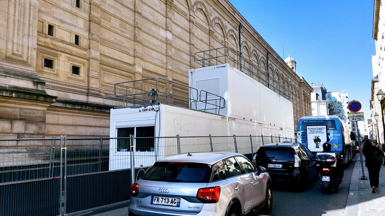 Cet espace est régulièrement occupé par des baraquements de chantiers, appelés couramment "algécos", car la voie est à sens unique, relativement large et bordée sur la rive impaire d'un mur borgne qui est l'enceinte des bâtiments des Archives Nationales. Lorsque des travaux sont entrepris dans le secteur, c'est généralement là que s'établissent ces structures d'accueil du personnel et de l'outillage.
